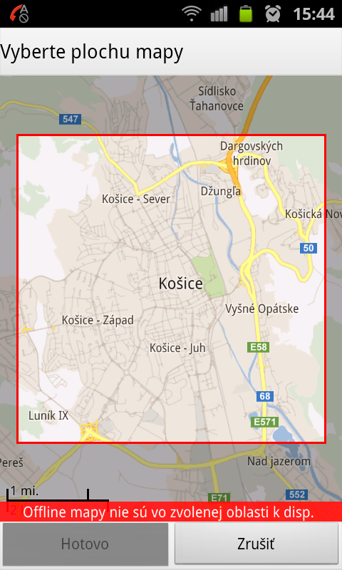 Bohužial okrem Bratislavy sa nám pri pokuse o uloženie máp vždy zobrazila hláška "Offline mapy nie sú vo zvolenej oblasti k disp." Skúšali sme tieto mestá: Košice, Prešov, Poprad, Rimavská Sobota, Lučenec, Zvolen, Banská Bystrica, Prievidza a Trnava.